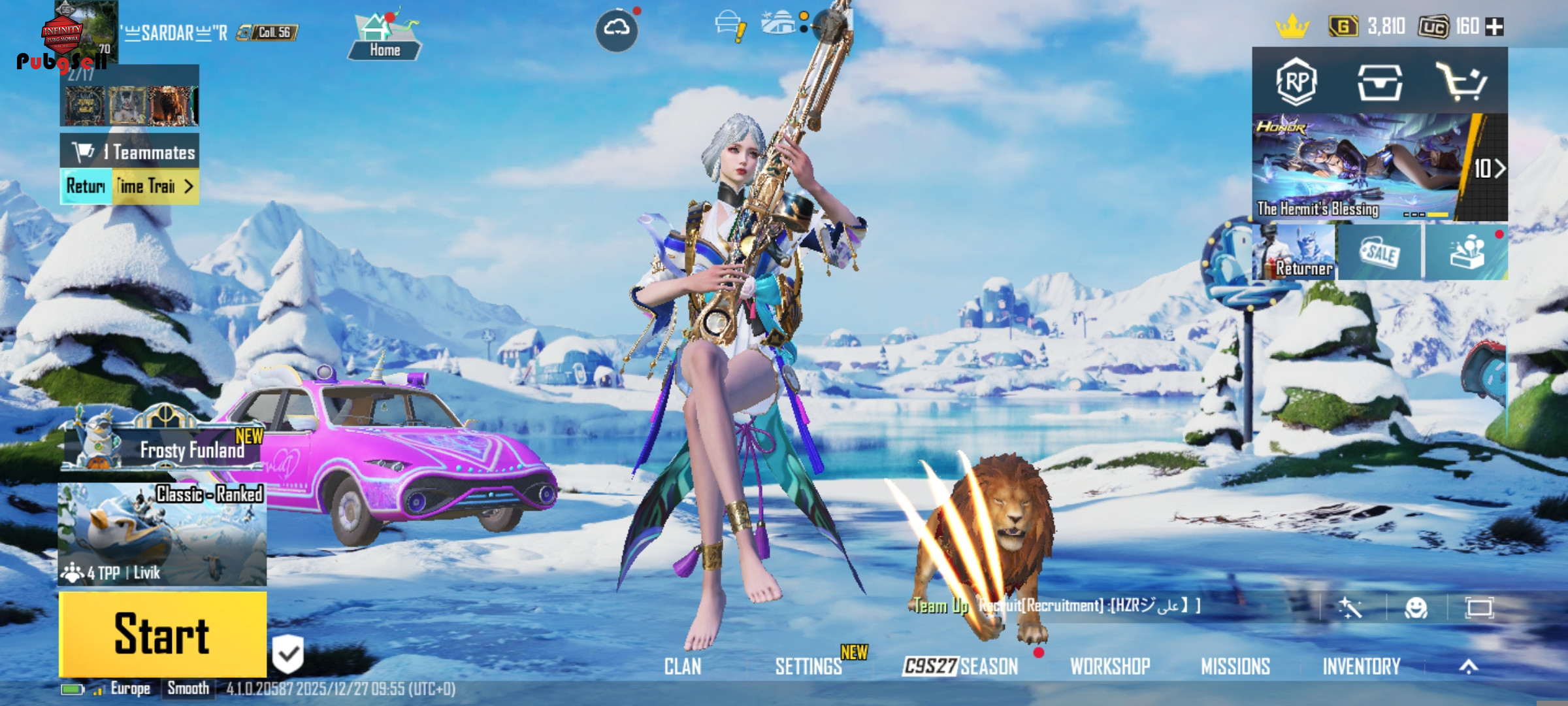 اکانت فوق العاده خوش شانسی سه سالی هست که دارم اکانت رو ولی خب دیگه الان بازی نمیکنم همه چی داره 28گان اپگریدی داره و مهم ترین گام ها کیا مسیج شدن از جمله یخی 6اسکارل خیلی خاص 4 دی پی MG3به همراه لباس اپگریدی خودش و خیلی چیزای دیگه که داخل فیلم مشخصه واقعا خوش شانسه یوسی زیادی خرج نکردم و انقدررر اسکین گرفتم پول نیازم