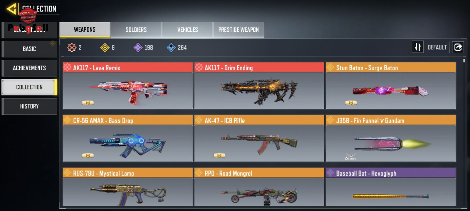 چابر لجند نید لجند اسموک لجند 6تا لجند تفنک 2متیک یکیش زمانیه بیشتر از3٠تا دنس بیشتر از8تا بتل پس خورده همه چی تو عکس معلومه