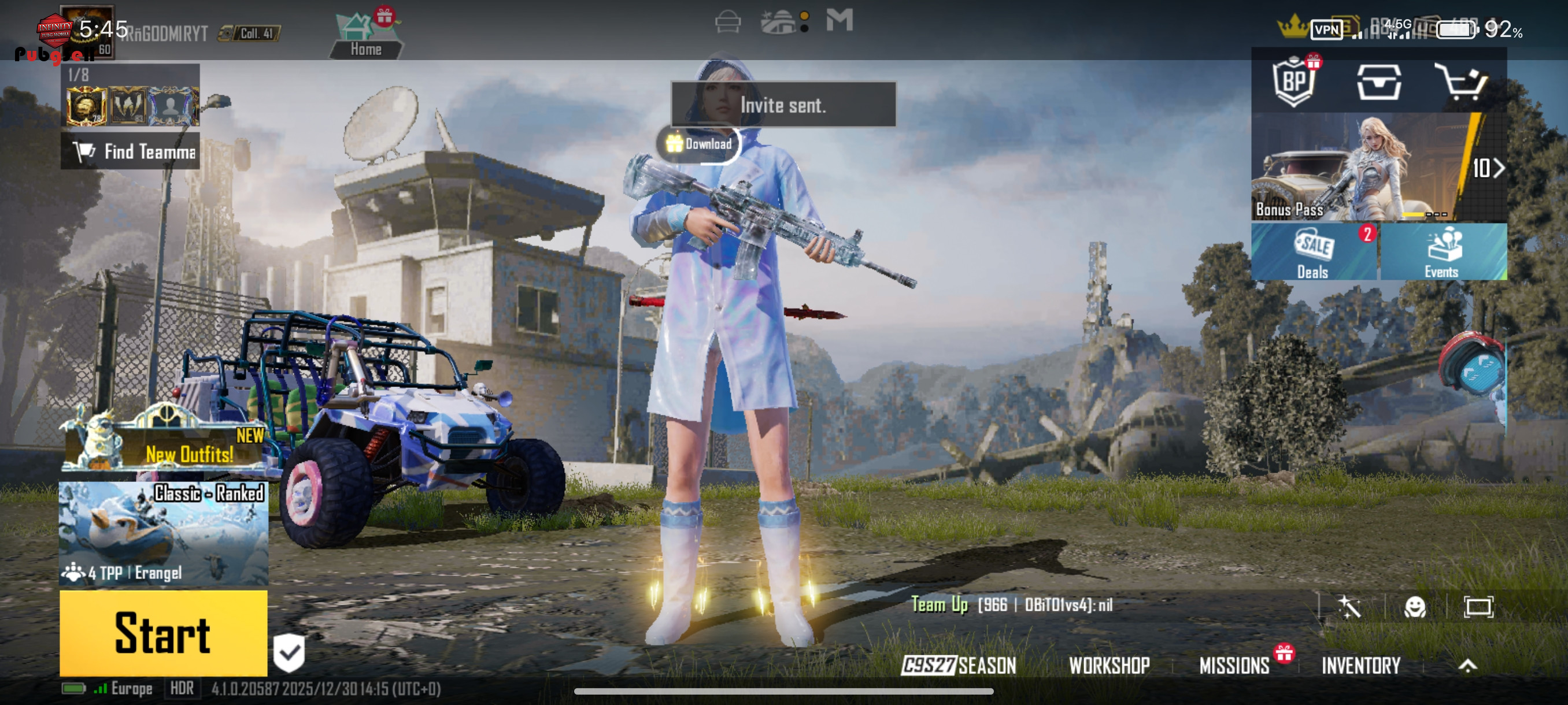 اکانت کاملا اماده تحویل هستش اکانت دارای : امفور یخی 3 ام هفت صد متیک فورج تامسون الایت 1 پیپی بایزن الایت1 یوزی الایت کیل مسیج امجی متیک فورج 1 1عدد متیک فورج و 22شکسته 9مینی مت لباس یخی