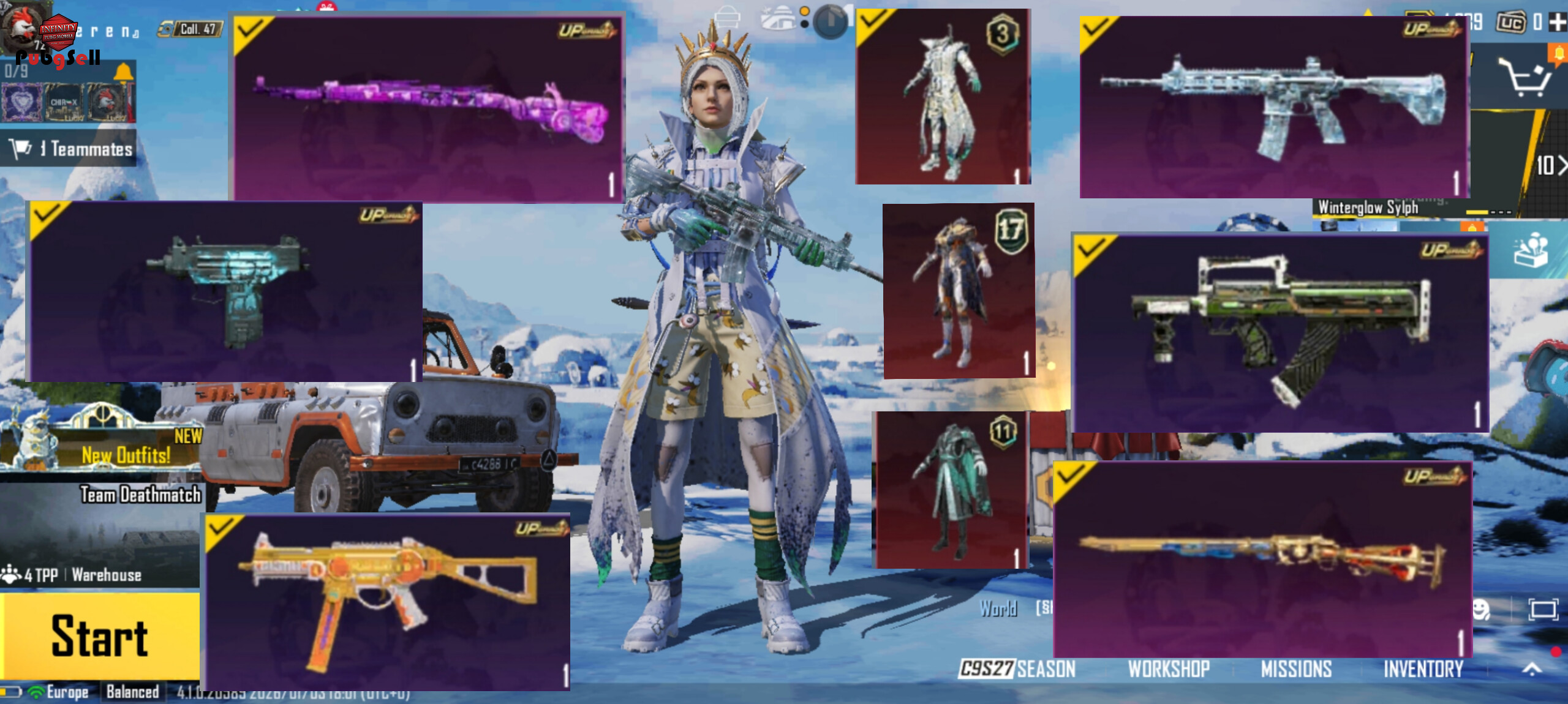 چندین ست متیک غیر از ارپی 13 تا گان اپگریدی هفتا غیر از ارپی امفور یخی کیل مسیج گروزا کیل مسیج اسکارل کیل مسیج کار98 کیل مسیج ام24 جدید ک با التیمیت اومد دوتا کارت ایدی داره چتر پوسایدون داره سه تا کاراکتر داره