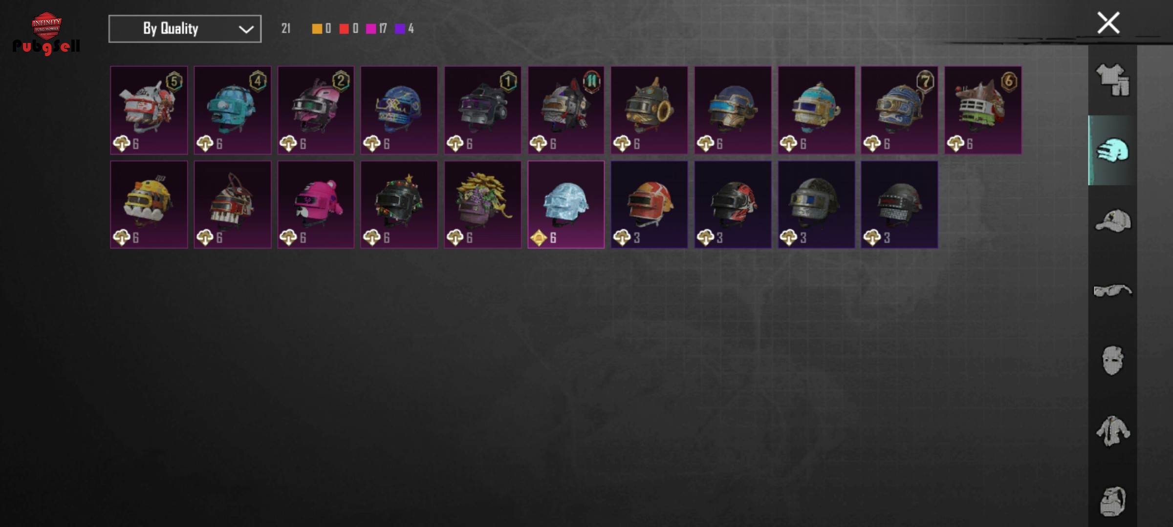 چندتا لباس متیک آرپی هلمت یخی کلاه پاندا و ماسک سیزن 2 و چندتا کلاه سیزن 3 یو ام پی آرپی دی بی اس آرپی پن و قمه آرپی شاتگان طلایی سیزن 2