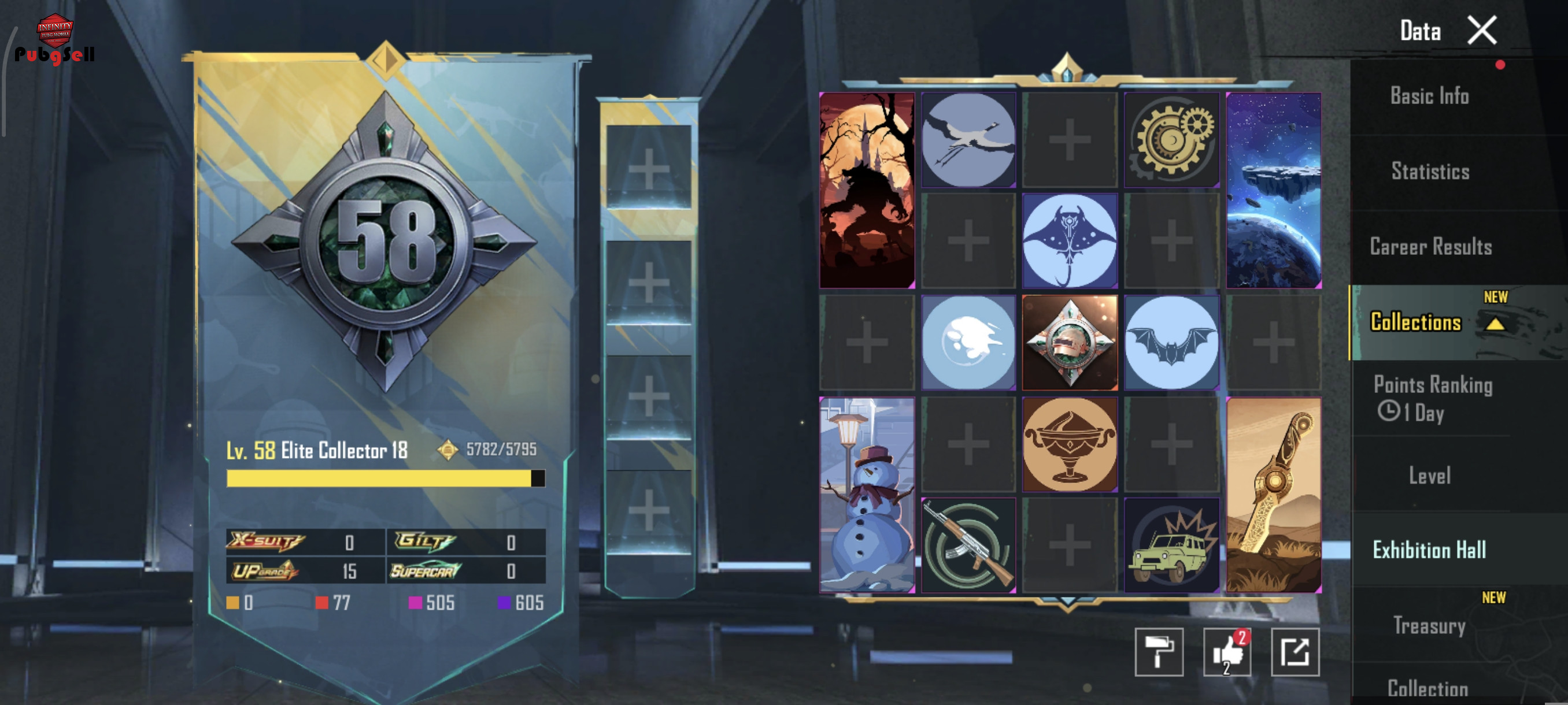 اکانت بسیار خوش شانس من خودم بخاطر کارم زیاد دیگه بازی نمیکنم و دارا 2 متریال و 3 متیکفورج و دنس های قدیمی لباس بتمن و خیلی چیز ها اسکین گان زیاد دارد