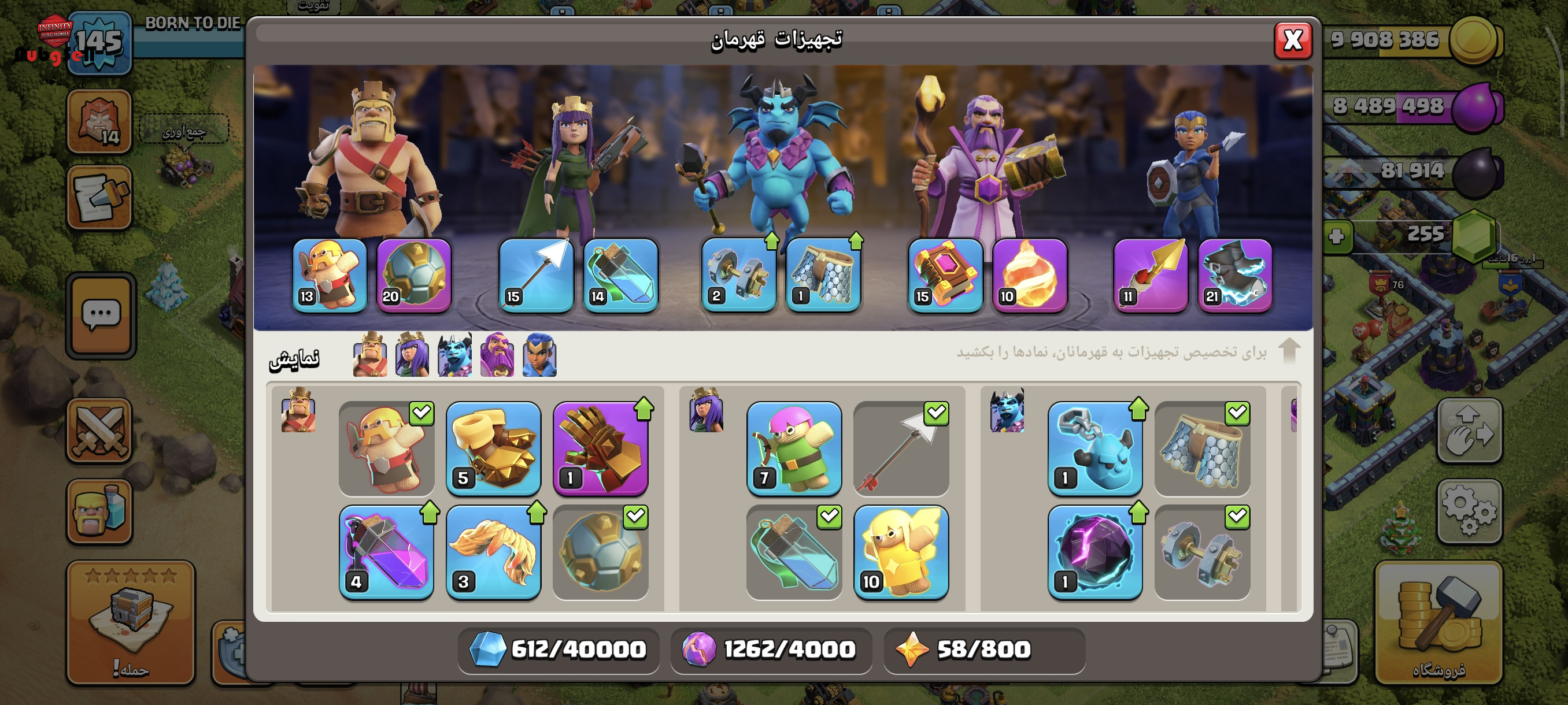 تغییر نام رایگان ، هیرو لول بالا ، دفاعی های اصلی اپگرید شده مثل برج جهنمی ، توپخانه عقاب ، شلوغ انداز و ...