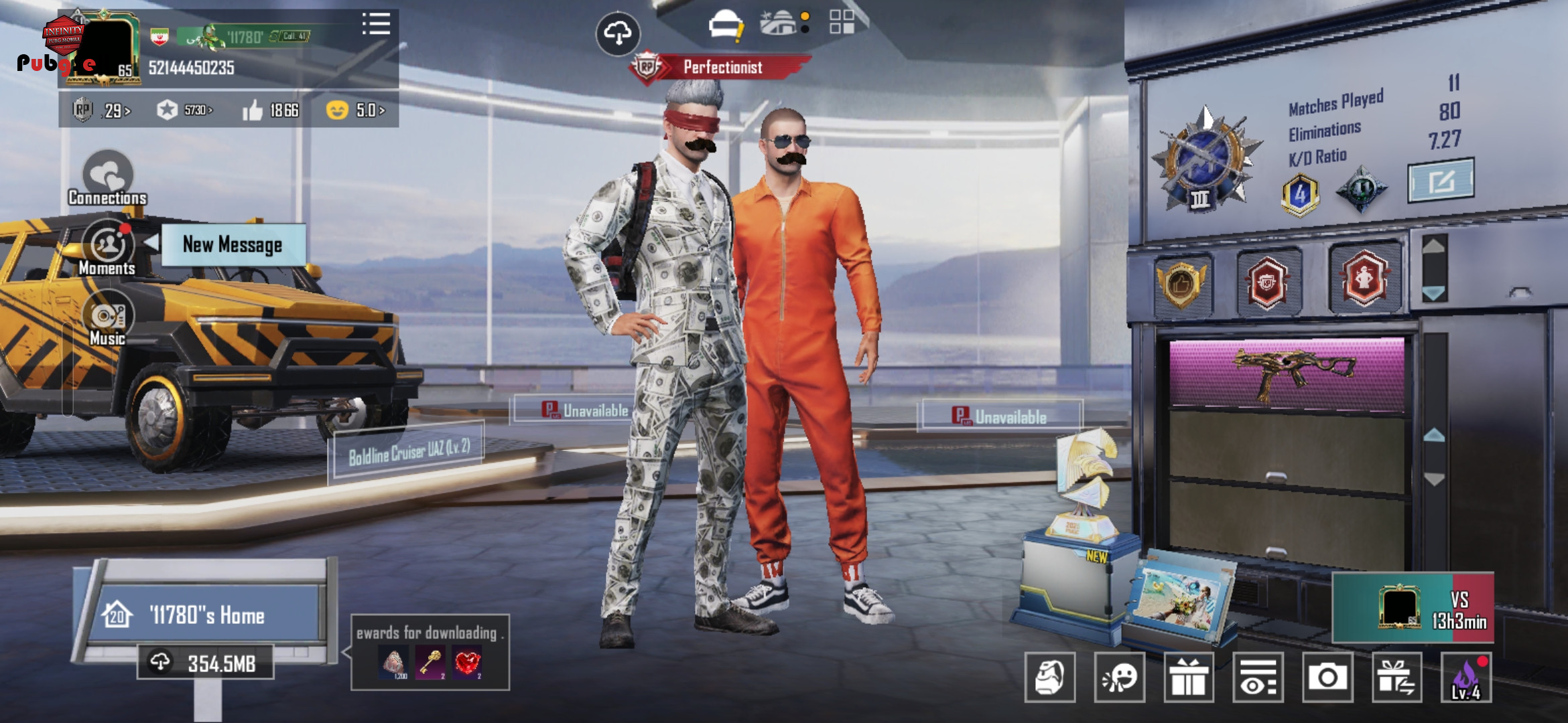 اکانت خوش شانسی هست با جعبه رایگان ام700 در اوردم سه تا نید دوتا قابل بالا بردن لول ، ده گان اپگریدی 5 ارپی 5 غیر ارپی دوتا ماشین متیک فورج لول اخر ،4نیم متریال، 1 عدد سیلور طلایی ، طناب قرمز، پروفایل متیک فشن، 20 تا متیک دیگه میخواد تا تایتل متیک فشن، کلی اسکین و دنس که در ویدئو معلومه چند سیزن کانکوئر شده تی دی ام معمولی ، 20 تا متریال لباس ، یک عدد متیک فورج کامل گان های غیر ارپی: یو ام پی جعبه فرعون لول 2 با نید ام 700 لول 1 با نید قمه کیل مسیج کار98 کیل مسیج یو ام پی جعبه طلایی لول 1 گان های ارپی اسکارال کیل مسیج ام کی 47 کیل مسیج شاتگان لول 2 کلت لول 2 تیرکمان لول 1 ماشین های اپگریدی: جیپ لول اخر پیکان لول اخر 8تا یا شاید بیشتر دقیق یادم نیست هواپیما ، یدونه هلیکوپتر بقیه توضیحات در ویدئو ببینید 🙏❤️