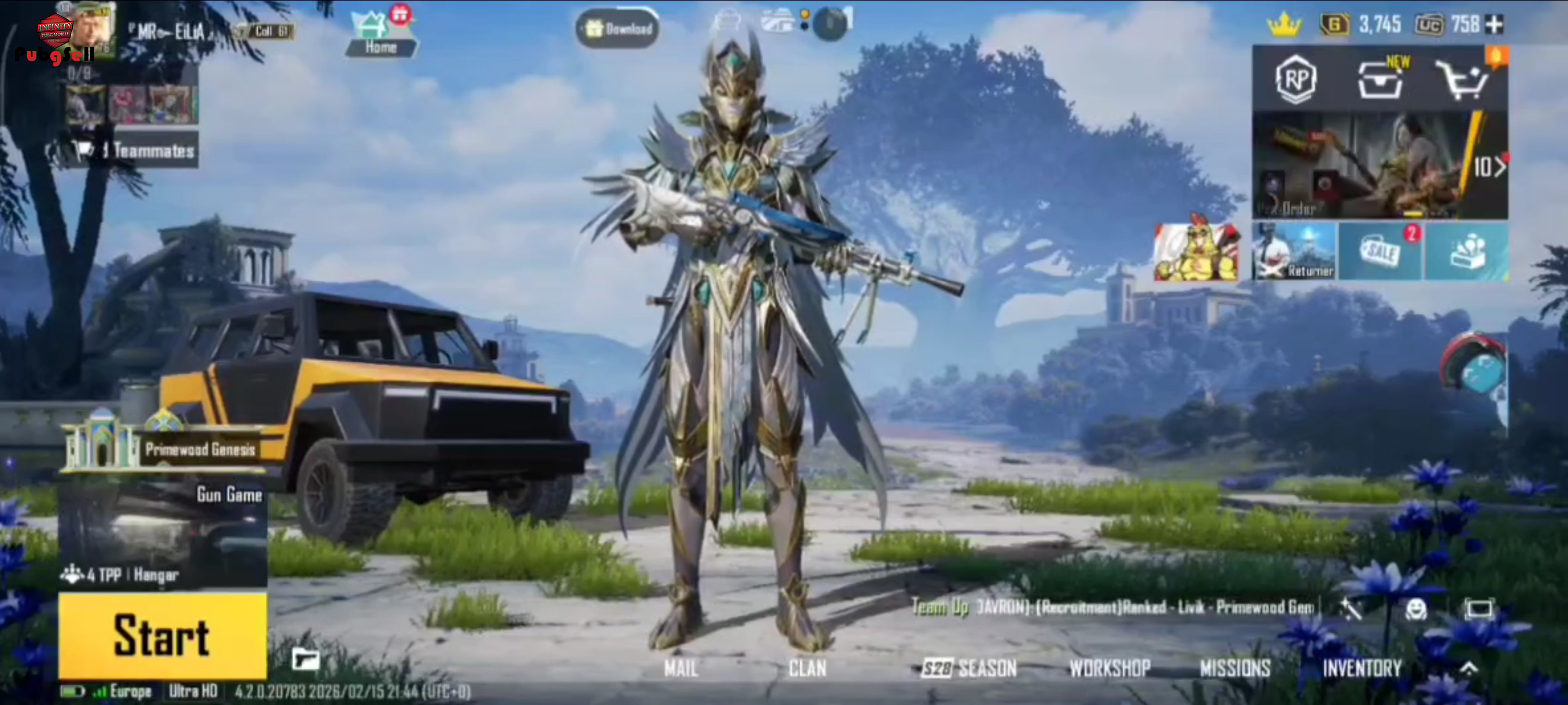 تغییر نام مدتی دارد❌ اکانت خوش شانسیه بتل پسه الان حدود 850 یوسی میشه کلی اسکین داره گانا اپگریدی اکثرا مکثه اسکین باگی سونیک اسکینا سارا ویکتور لورنزو املیا و... فیلم نگاه کن عالیه