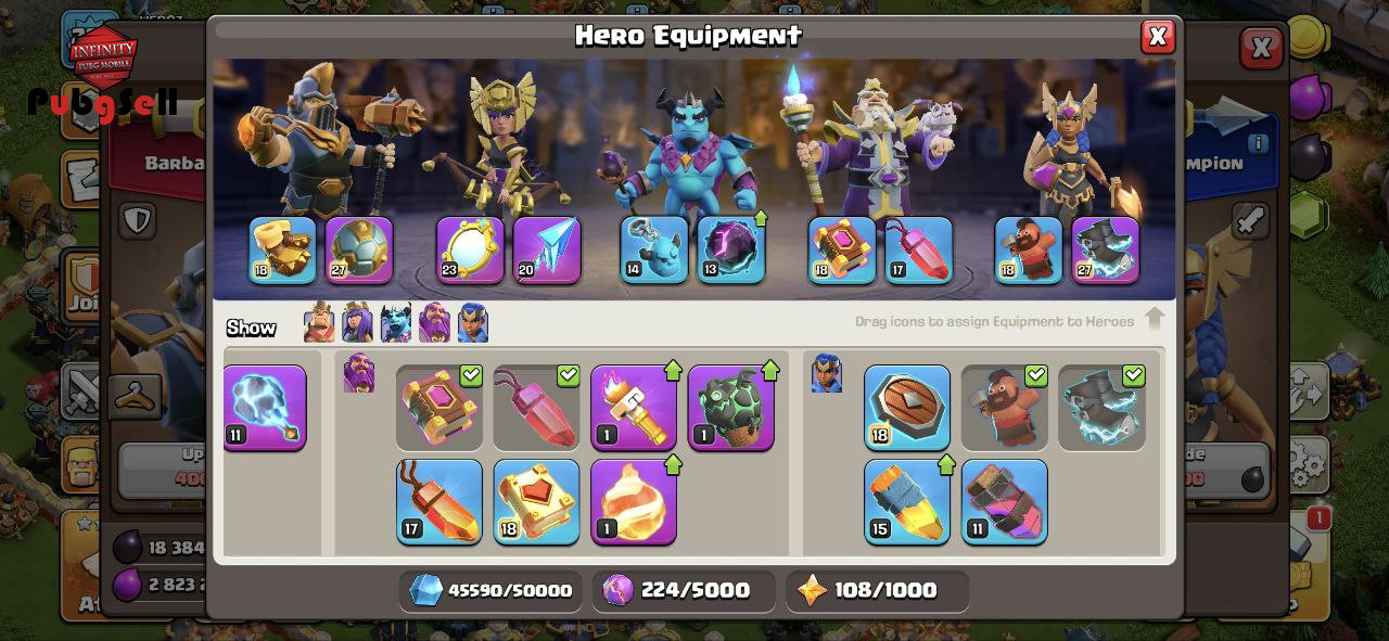 💯 لول :271 🏠 تانهال:18 💎 تعداد جم:4700 👷تعداد کارگر:6 ⚜ تغییر نام: با جم 🔐 لينک شده : سوپر سل ☑️ توضیحات: 🤴 کینگ بربر: 100 👸 آرچر کویین: 100 🧝♂ گرند واردن:75 🦸♂هیروی سلطنتی: 50 اکانت تو تک تک وار لیگ ها شرکت کرده ستاره وار بالا مپ شب کامل مکس امانت مخصوص پلی