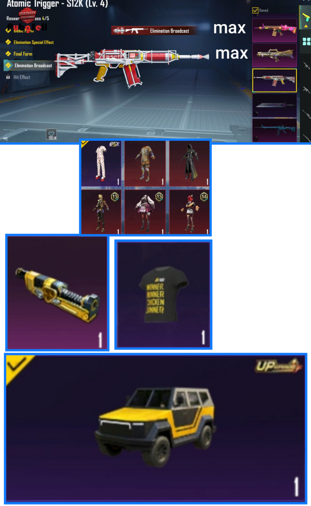اکانت خیلی خوبیه 6گان آپگریدی داره اسکارل مکس شاتگان مکس و شاتگان لول چهار و M16 برقی و غیره یک متریال کامل داره ماشین آپگریدی