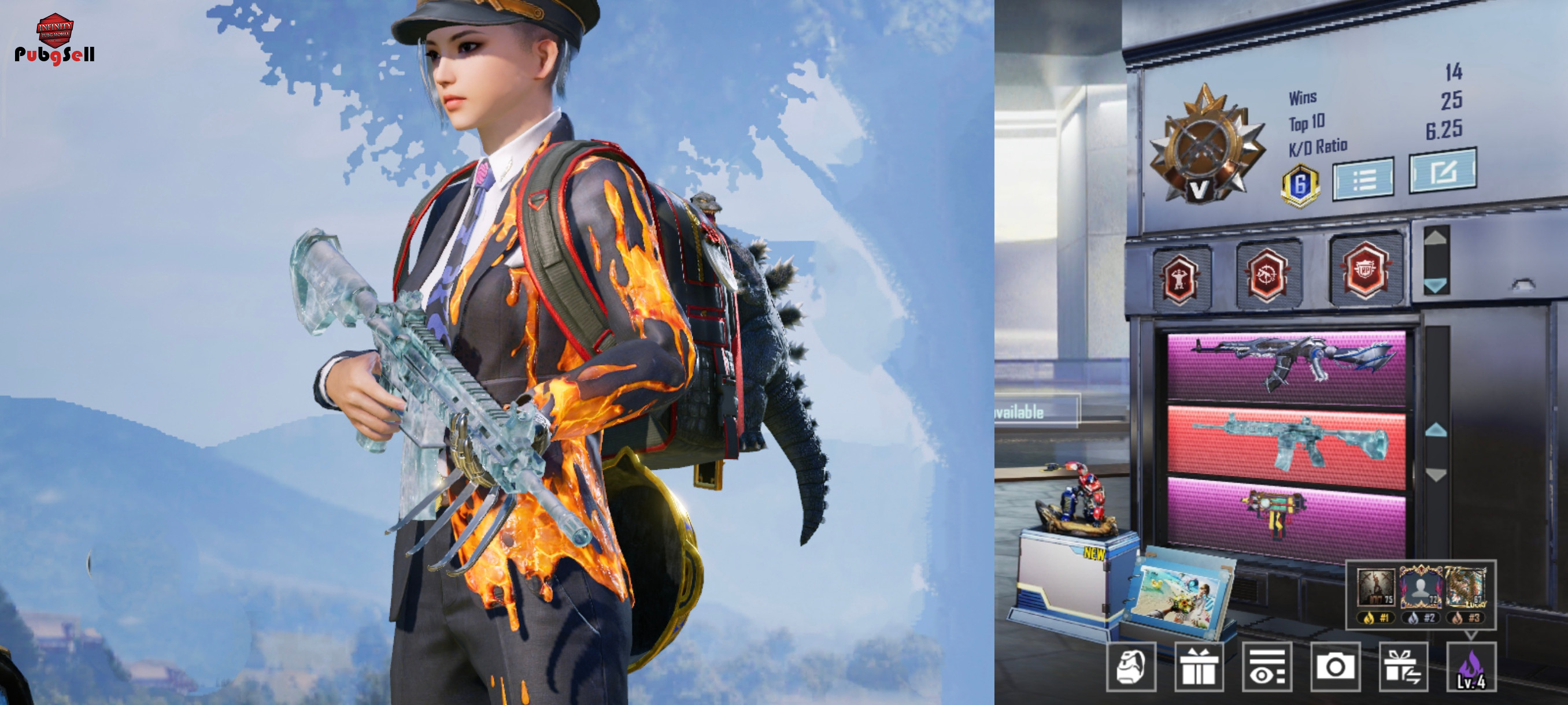 اکانت 18گان آپگریدی امفور یخی مکس🥶 یوری کیل مسیج یو ام پی کیل مسیج چاقو کیل مسیج ام 16 کیل مسیج بقیه گان متیک فورج و ارپی هستن لول یک 60متیک 372لجند399 آپیک کاراکتر اندی بازه اسکین جیپ کمیاب جای گان دوم و سوم باز کیف و ست های گودزیلا یوسی واسه الایت داره بقیه مشخصات ویدیو نگاه کن